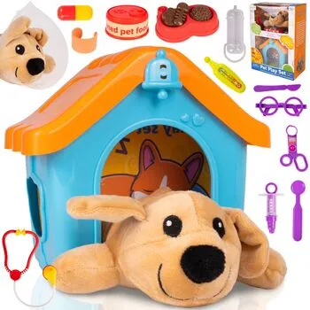Pes s psí boudou Sada malých veterinárních doplňků Plyšový maskot doktor