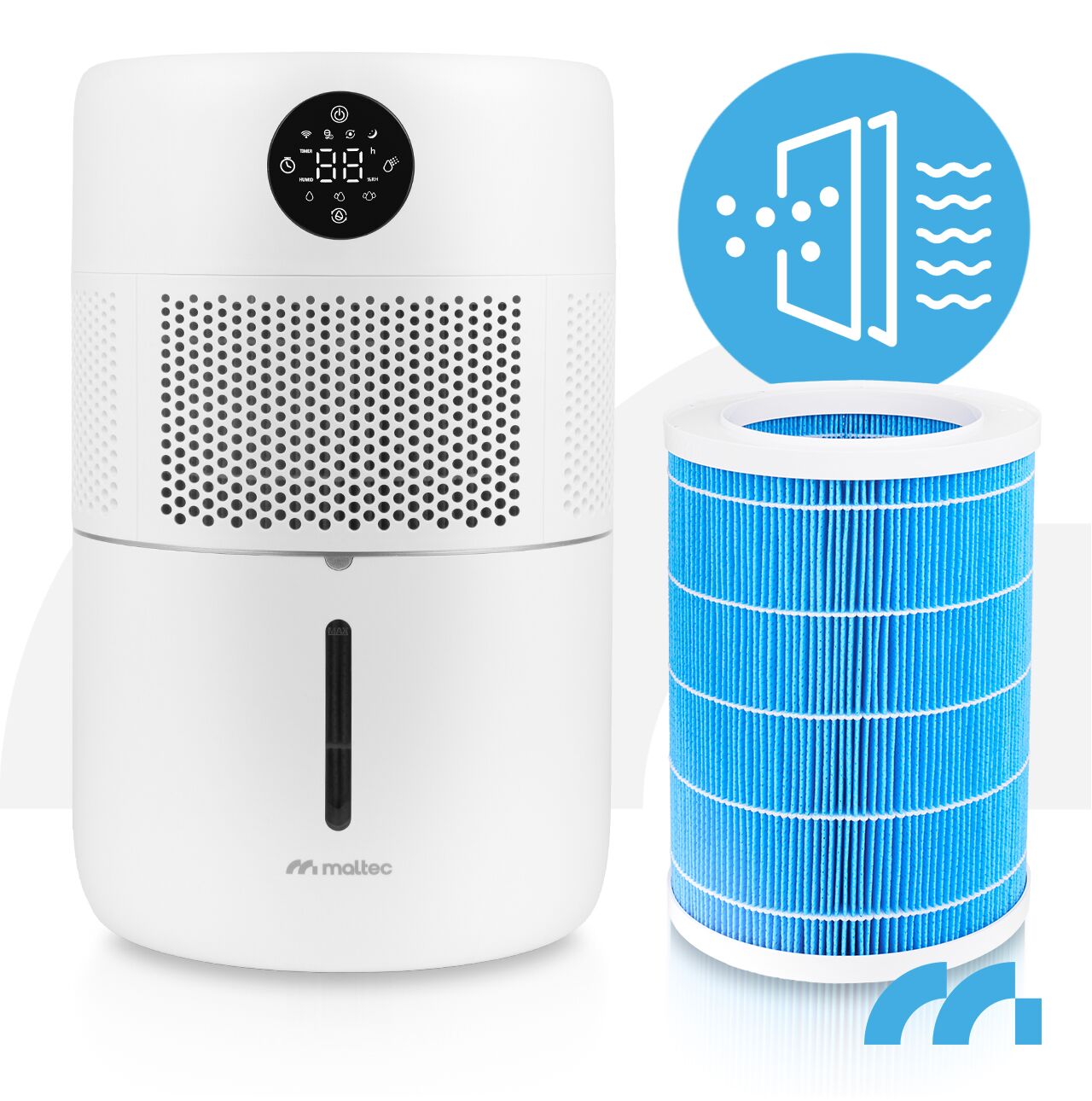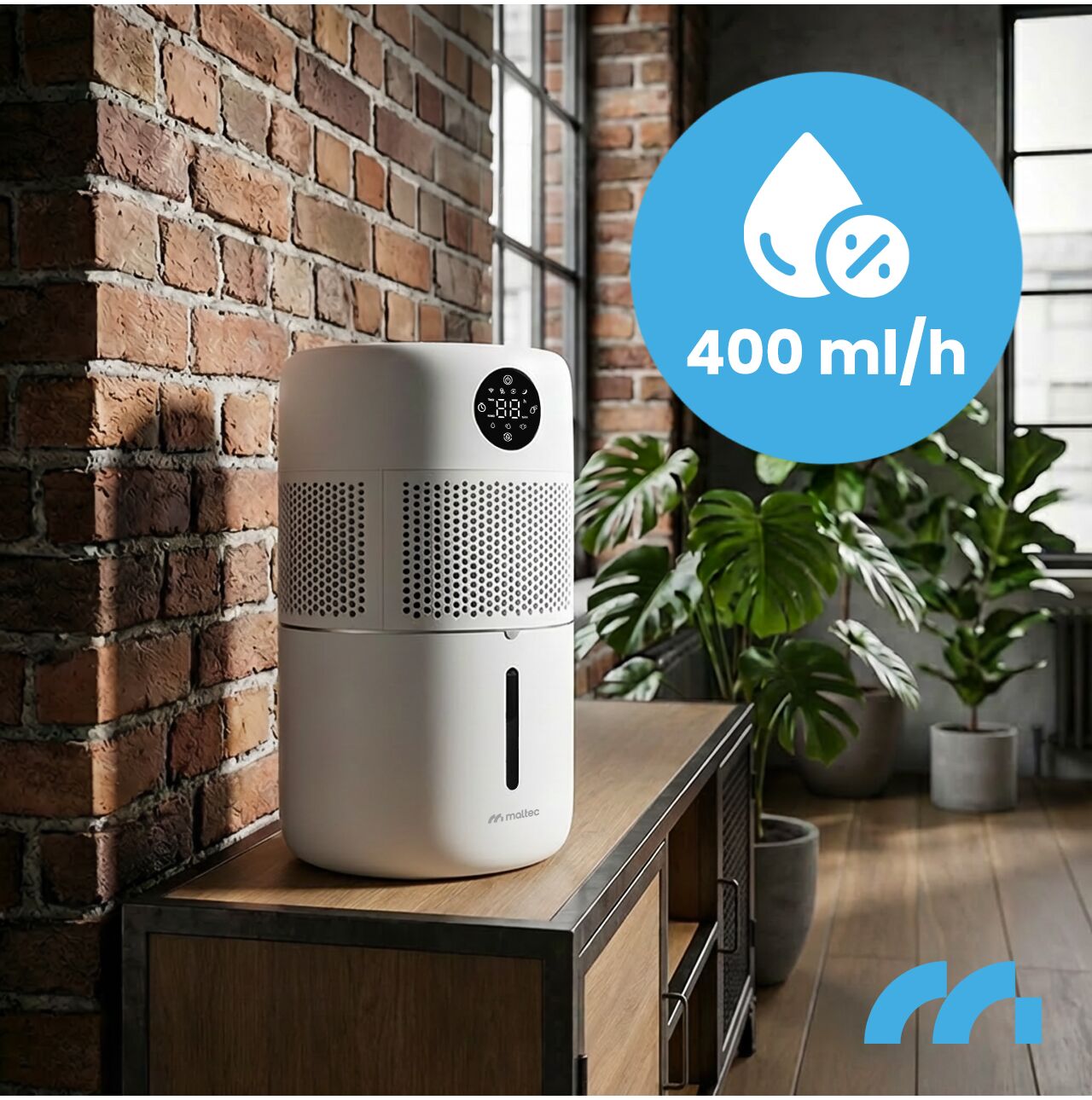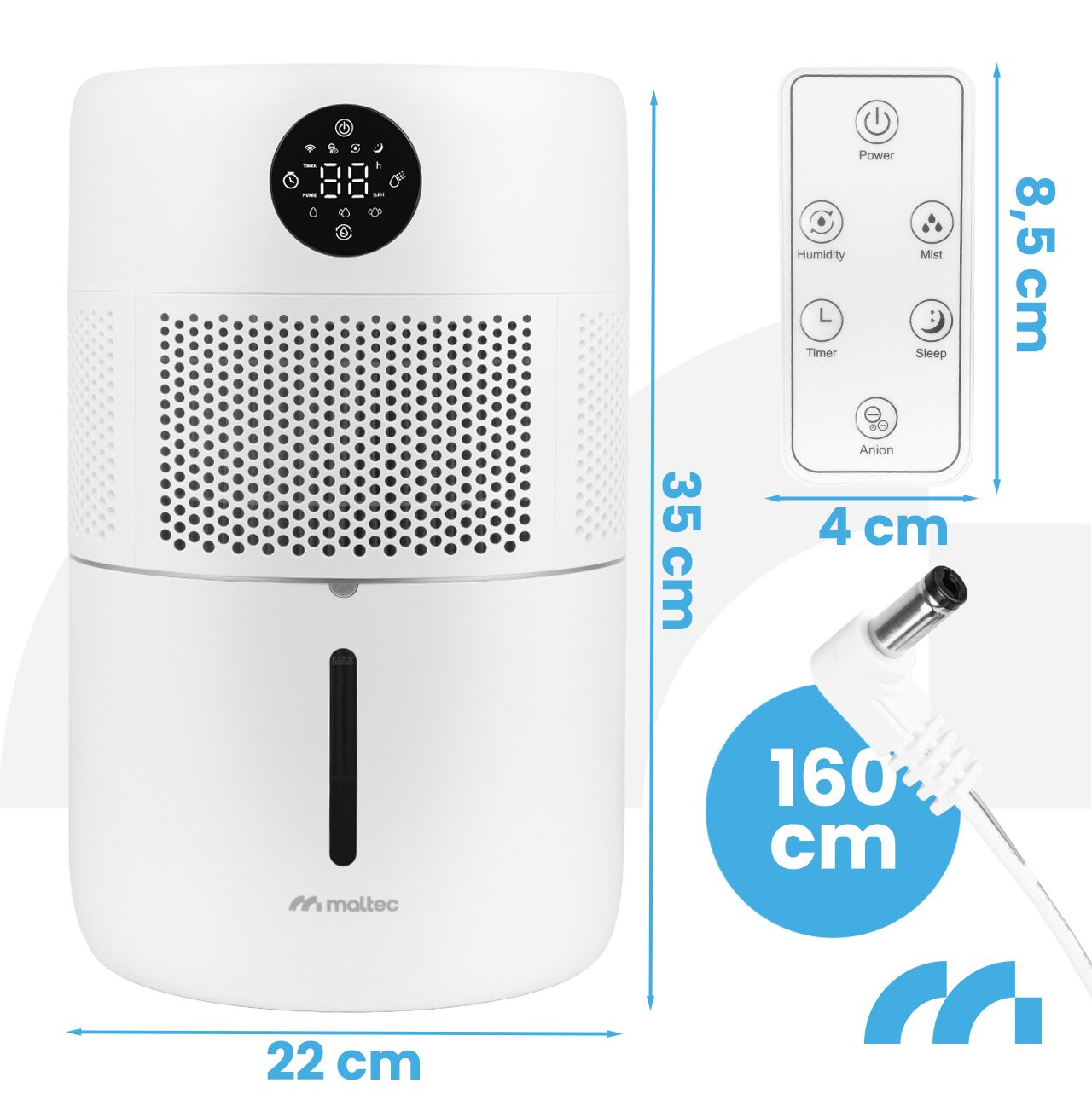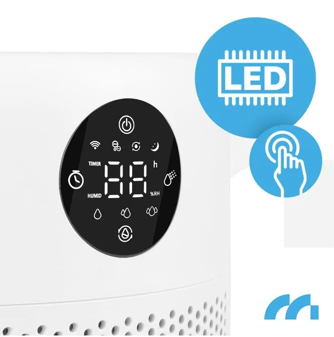Díky vestavěnému hygrostatu umožňuje zařízení nastavit cílovou vlhkost v rozsahu 40–80 % relativní vlhkosti (v krocích po 5 %) .