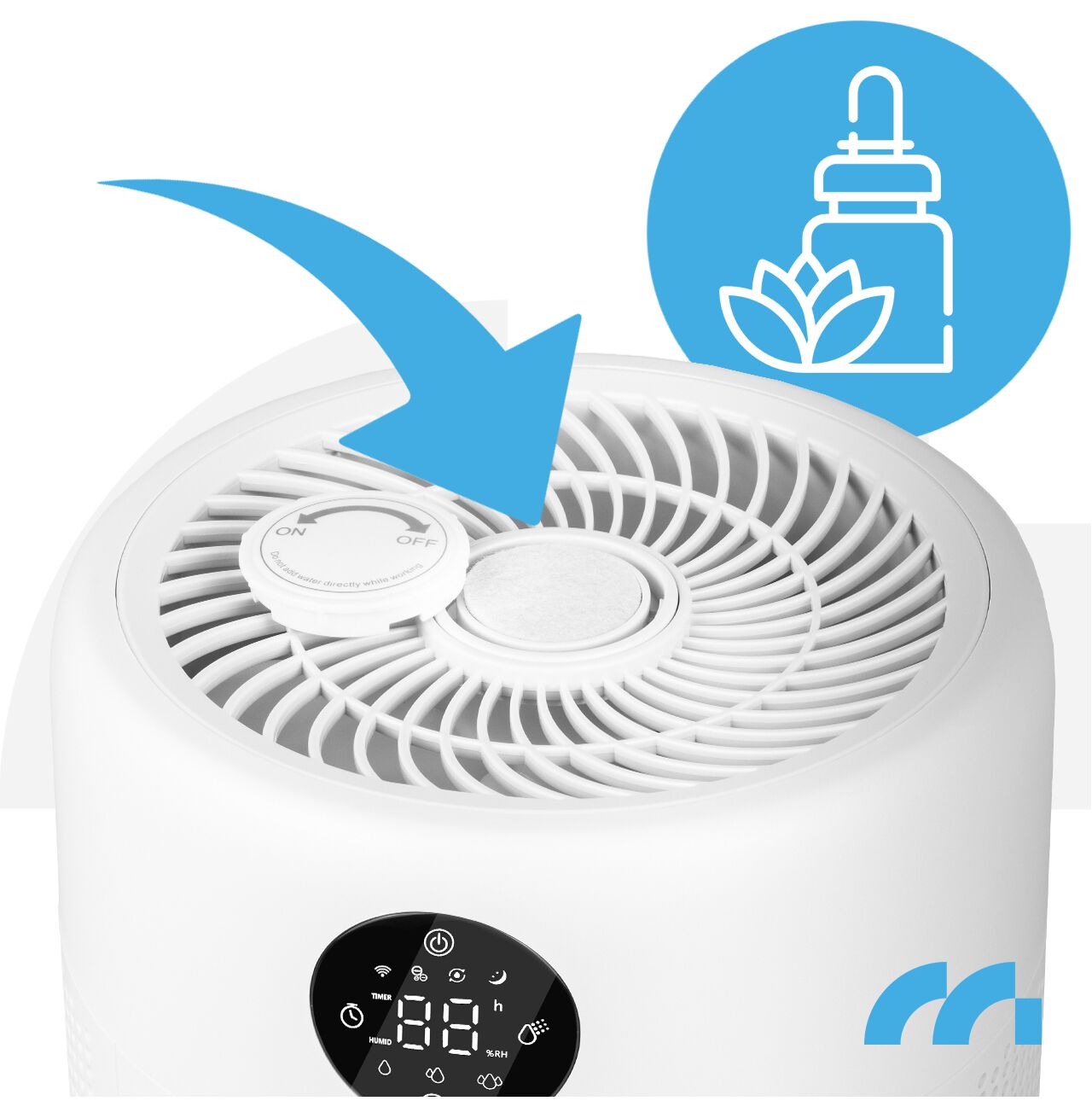 WT-6000-ION má samostatnou misku na esenciální oleje , což umožňuje používat aromaterapii bez zasahování do zvlhčovacího systému.