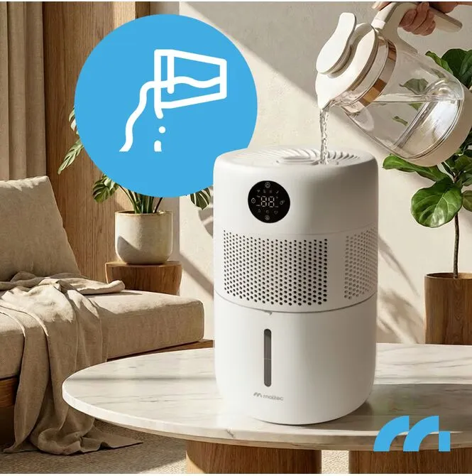 Díky vestavěnému hygrostatu zvlhčovač automaticky reaguje na změny vlhkosti v místnosti. Po dosažení nastavené úrovně vlhkosti se zařízení automaticky zastaví a znovu se spustí, když vlhkost klesne.